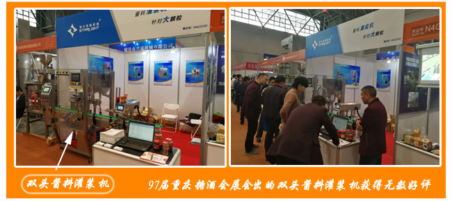 2.經(jīng)該雙頭顆粒顆粒醬料灌裝機(jī)灌裝后的瓶子表面無殘留;