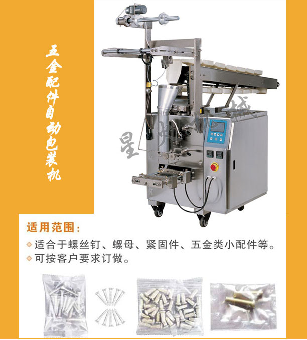 五金配件作為工業(yè)制造做的配套產(chǎn)品,它的用處及其廣泛,對于這些小小的各式各樣的配件,因?yàn)槠贩N多,數(shù)量雜等問題對于包裝卻是很費(fèi)時(shí)間的;星火自動(dòng)包裝機(jī)將自動(dòng)化技術(shù)應(yīng)用到這一領(lǐng)域,推出的鏈斗式自動(dòng)包裝機(jī)完美解決了這一難題;不僅可以讓整個(gè)包裝過程實(shí)現(xiàn)了勞動(dòng)力的解放,并且包裝效率是非常高的;還可以多種配件混合包裝、能滿足不同生產(chǎn)企業(yè)的需求。下面小編就帶領(lǐng)大家詳細(xì)的了解一下這款五金配件自動(dòng)包裝機(jī)