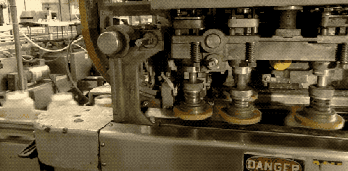 灌裝完成后,瓶子進(jìn)入旋蓋,采用自動(dòng)旋蓋機(jī)高速的機(jī)器擰蓋生產(chǎn),保證生產(chǎn)的穩(wěn)、準(zhǔn)、快。