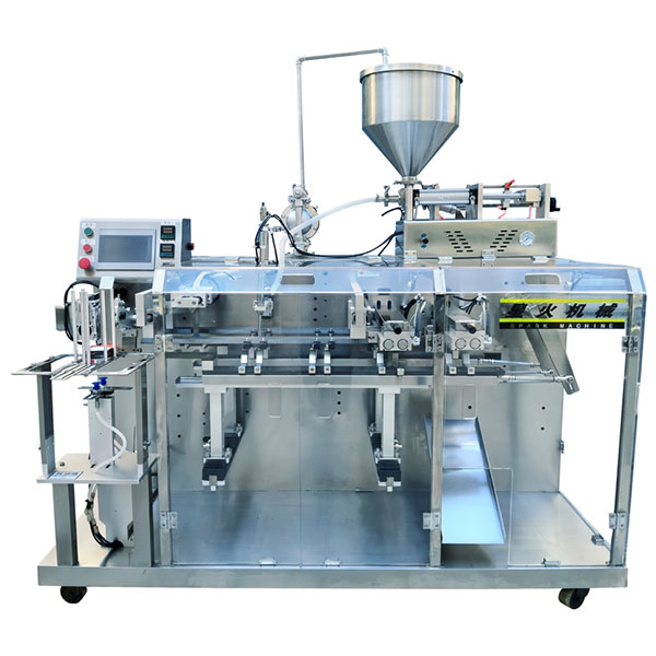 全自動水平式給袋包裝機是包裝類似方便食品調(diào)料包袋型樣式可設計為三邊封或背封,包裝材質(zhì)多為單層或多層復合薄膜。食品調(diào)味料多趨向于多品種小批量生產(chǎn),可以根據(jù)物料特點、包裝規(guī)格選擇相應的包裝機型。袋裝液體自動包裝機采用蠕動泵計量,物料輸送管道一端與料桶相連一端深入制袋模具中,整個包裝過程中液體產(chǎn)品不與設備接觸潔凈衛(wèi)生,可用于醬油、生抽、食醋、調(diào)味油等產(chǎn)品的定量包裝。大袋液體膏體的包裝需要采用活塞泵計量,袋型多為背封袋,如番茄醬、芥末醬、花生醬、芝麻醬等膏體醬料。