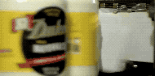 沒錯(cuò),這里就是貼標(biāo)了,智能灌裝流水線中采用了轉(zhuǎn)盤式貼標(biāo)機(jī),可以看到機(jī)器貼商標(biāo)很好玩兒,商標(biāo)紙一側(cè)有膠水,貼住罐子以后,機(jī)器帶動(dòng)罐子轉(zhuǎn)一圈兒,商標(biāo)紙就卷到罐子上了。