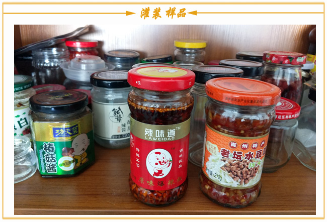 通過瓶子從輸送帶上走到灌裝工位,進行醬體的填充,然后由自動取蓋器,自動上蓋并預(yù)選緊。較后由真空旋蓋工位進行較終的抽真空旋蓋。